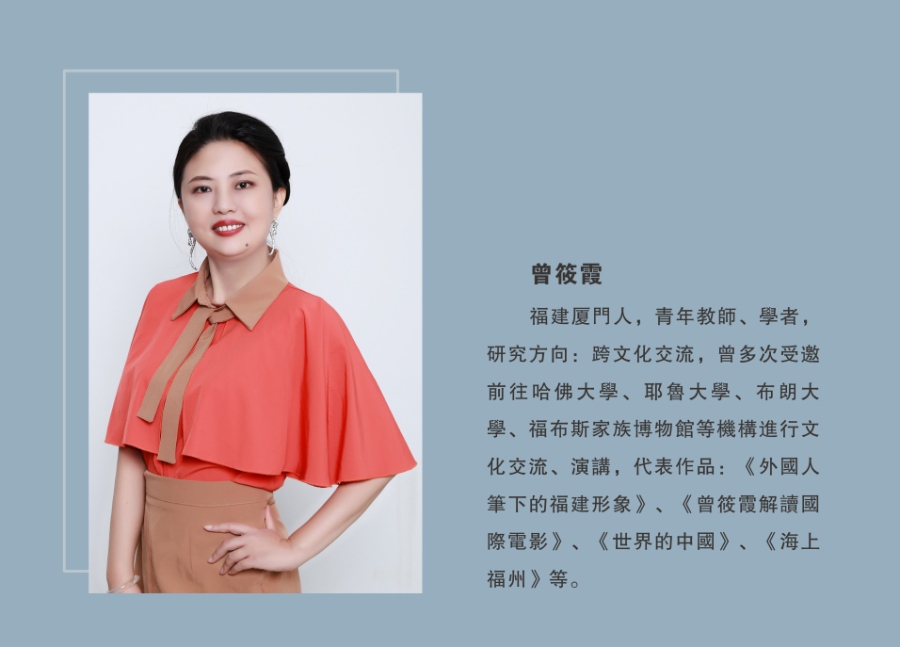 曾筱霞長(zhǎng)期從事跨文化交流與文藝作品創(chuàng)作,聚焦跨文化傳播中的中國(guó)形象塑造以及中國(guó)海洋文明研究,其代表作《外國(guó)人筆下的福建形象》為美國(guó)耶魯大學(xué)東亞圖書館收藏,曾多次受邀前往福布斯家族博物館、布朗大學(xué)進(jìn)行學(xué)術(shù)交流。在大眾文化傳播領(lǐng)域,其多次執(zhí)筆央視紀(jì)錄片,作品發(fā)表于《法國(guó)研究》、《北大商業(yè)評(píng)論》、《中國(guó)國(guó)家地理》等影響力刊物;還曾受邀成為人民網(wǎng)《“行走新絲路”跨國(guó)采訪活動(dòng)》福州站專家、東南衛(wèi)視《揚(yáng)帆走海絲》的學(xué)術(shù)顧問。